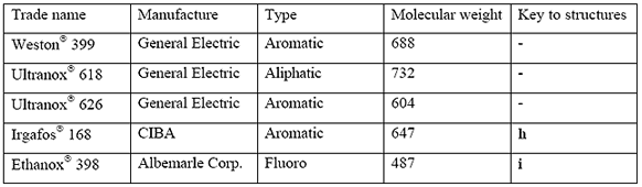 | 대표적인 Hindered amime의 종류 | 대표적인 2차 산화안정제의 종류(Phosphite) | 기타 플라스틱 충진제 및 목적 |