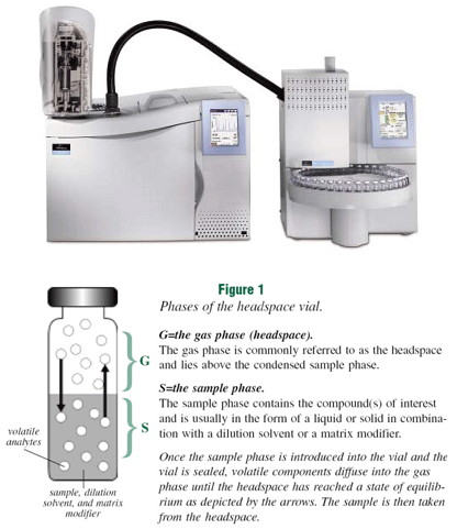 - 헤드스페이스법도 가열시 발생하는 가스 성분을 분석하는 장치입니다. 시료를 10 mL 바이알용기에 밀봉하여 일정 온도와 일정 시간 가열하여 발생하는 가스(바이알의 용매 윗부분상단)를 기기에 주입하여 가스크로마토그래프에 의해 각 성분으로 분리합니다. 시료용액을 주입하지 않고, 용매위의 상단가스만을 주입하기 때문에, Headspace(머리공간)라는 용어를 쓰게 된 것입니다. 분리된 성분은 질량 분석기에서 검출되어 얻어진 크로마토그램에서 성분의 분류를 수행합니다. VOC, 용매, 냄새 분석 등에도 이용됩니다