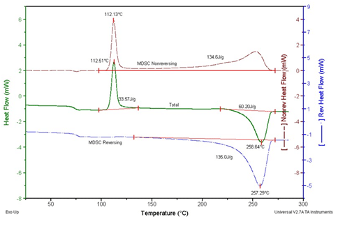 측정시료와 참조시료(reference cell)를 일정한 승온속도로 가열하면, 그 물질의 상변화에 따라, 참조시료 대비 열량의 변화(흡열: endothermic, 발열: exothermic 등)를 수반합니다. 이러한 heat flow의 변화를 보고, 시료의 유리전이온도, 결정화온도, 융점, 비열, 결정화도, 산화유도시간, 반응열(예, 경화반응) 등을 측정할 수 있습니다.