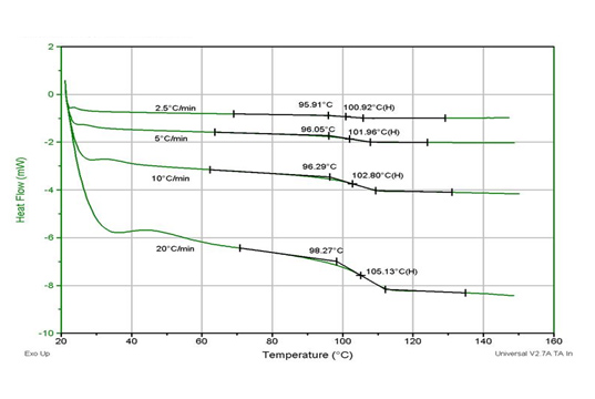 승온 속도에 따른 결정화 온도, 융점 변화
